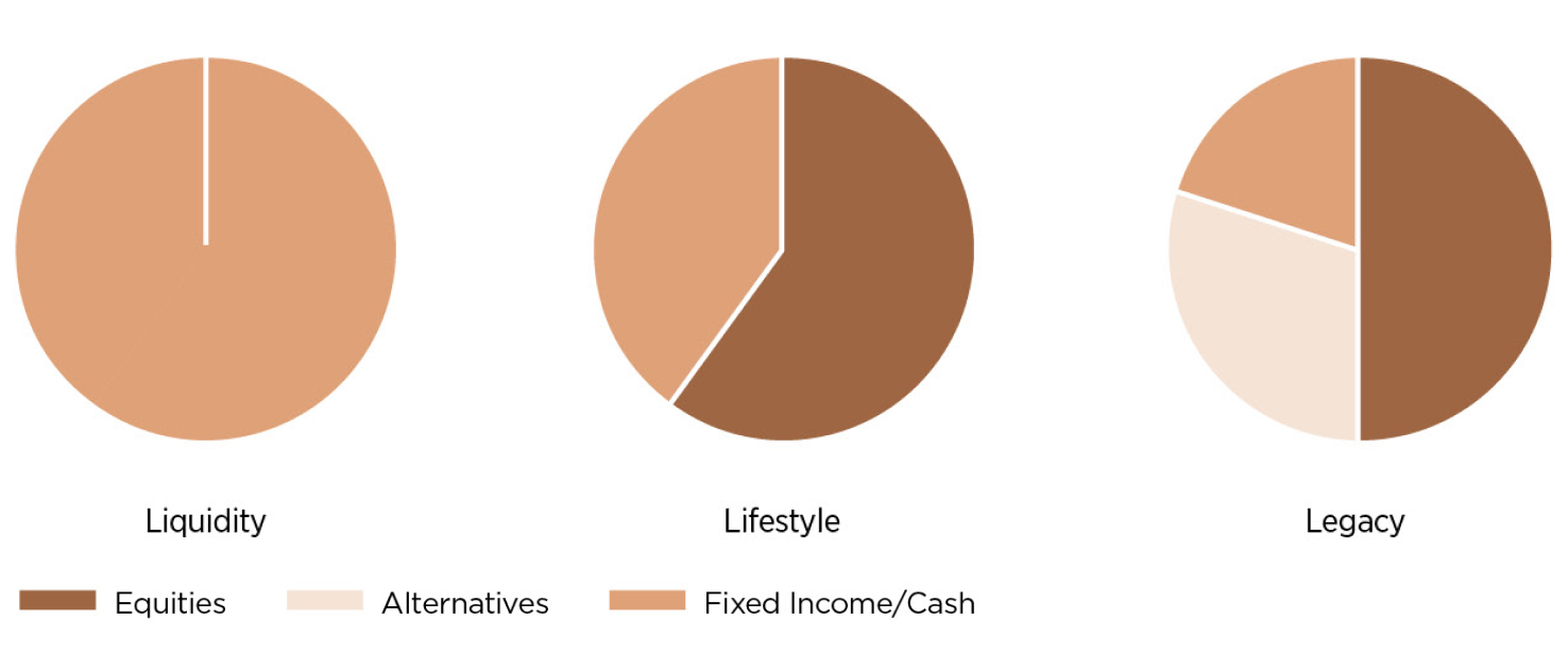 Once the intentions have been well defined for the family’s assets, as discussed above, the natural next step is to create a long-term or strategic asset allocation for each that is aimed at generating a return (with a commensurate level of risk) that is expected to achieve the aligned intent of that ‘bucket’. We believe strategic asset allocation accounts for over 90% of portfolio performance over time. In our view, setting an appropriate Strategic Asset Allocation strategy, that is aimed towards achieving a family’s long-term objectives is, the most important investment decision they will undertake.