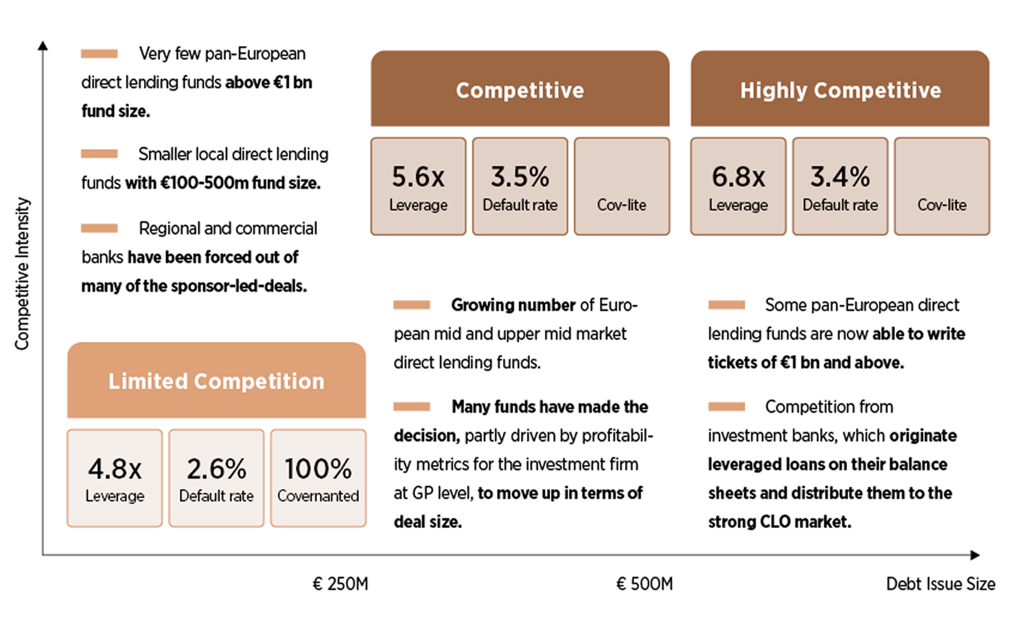 Just as in the US, the European upper-mid market and core mid-market are quite competitive and spreads are naturally lower as a result. Deals in the upper-end of the market are typically club deals with looser covenants and documentation. However, there is value to be found in the lower-mid market, where there is less competition and more attractive deals for lenders, with higher spreads, lower default rates, and stronger creditor protections.