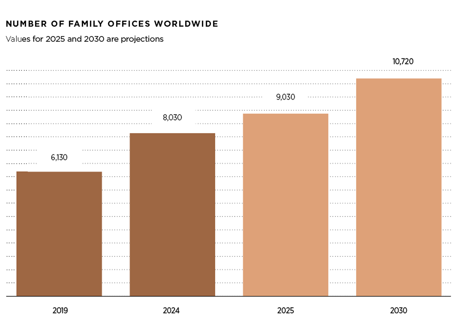According to Deloitte's "Defining the Family Office Landscape, 2024" report, there are now over 8,000 single-family offices globally, up 31% since 2019. That number is expected to surpass 10,000 by 2030, with assets under management projected to grow from $3.1 trillion today to $5.4 trillion within the next six years.