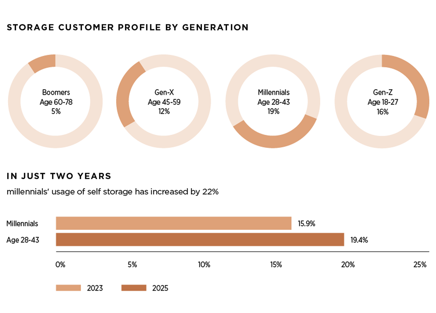 This downsizing is forcing Millennials and Gen Z to use self storage as an extension of their homes. It appears that self storage has become a part of their lifestyle.